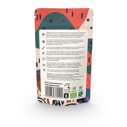 Fruktlegemene av Maitake inneholder unike D-fraksjoner av beta-glukaner, som har blitt studert for deres potensielle rolle i å støtte immunfunksjon og bidra til en balansert metabolisme. Studier viser at mycelium inneholder langt lavere nivåer av disse polysakkaridene.